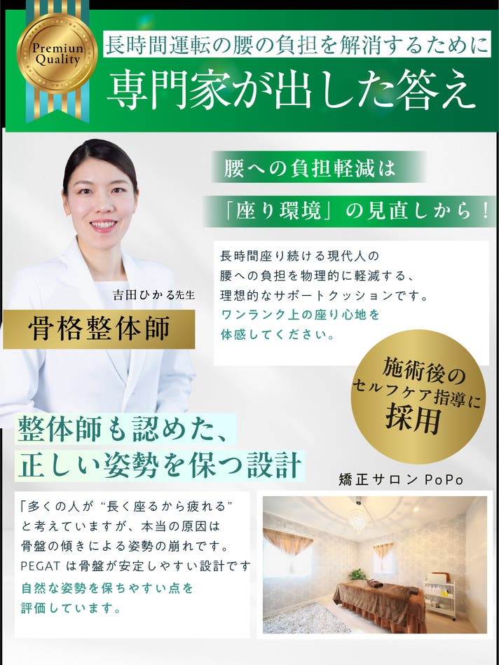 - 整体師と共同開発。従来のクッションの課題に向き合い生まれたサポート設計。