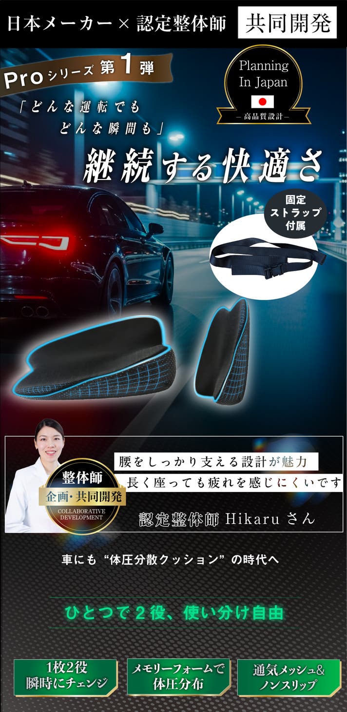 「Makuake(マクアケ)」は、実行者の想いを応援購入によって実現するアタラシイものやサービスのプラットフォームです。このページは、 プロダクトカテゴリの 「整体師と共同開発!運転の腰負担を分散。座面も背当ても使える2WAY快適クッション」プロジェクト詳細ページです。