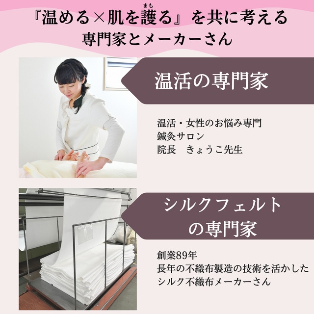 『シルク100%フェルトのおりものシート』は、女性の身体の専門家さんと、優れた技術を持った国内の工場さんに支えられた製品です。