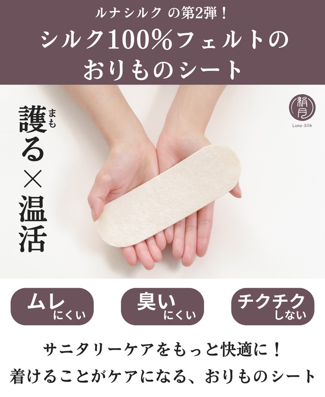 等のご意見を頂き、第2弾のシルクだけで作られた『シルク100%フェルトのおりものシート』が誕生しました!