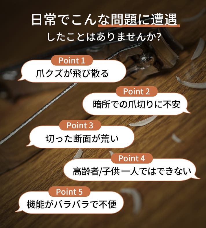 爪切りのたびに爪カスが散らかる場合を解消!爪カスの自動回収が可能です。