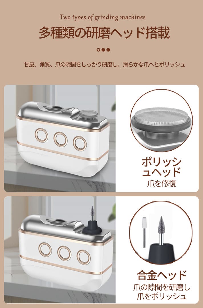 爪切りは始まりにすぎません。その後の研磨やお手入れは面倒に感じがちですが、LUNAREなら研磨ヘッドで複雑な作業も簡単に解決!