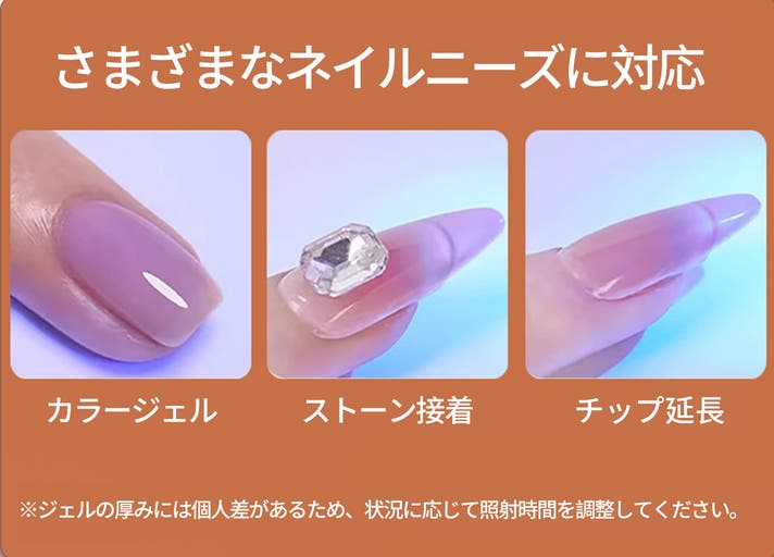 - UVライト自動タイマー付きで、プロ並みの仕上がりを簡単に!