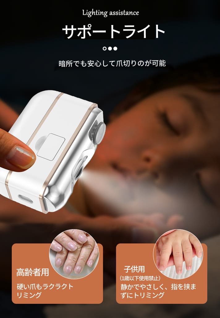 ・使用時にはライトが自動点灯し、カット部分の指先をしっかり照らします。暗所でも安心して爪切りが行えます。