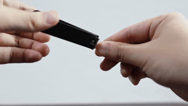 A2:安心設計の螺旋式ブレード採用のため、爪を切るときは軽く押し込んで刃に通してください。