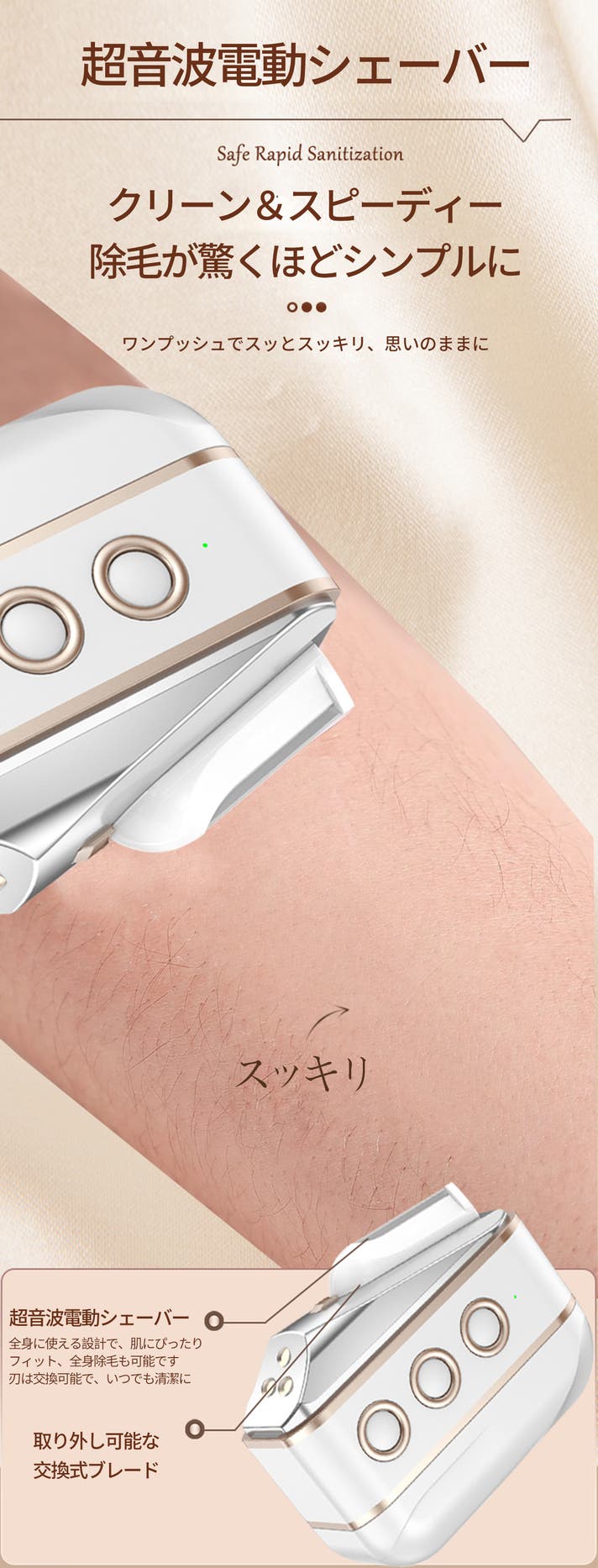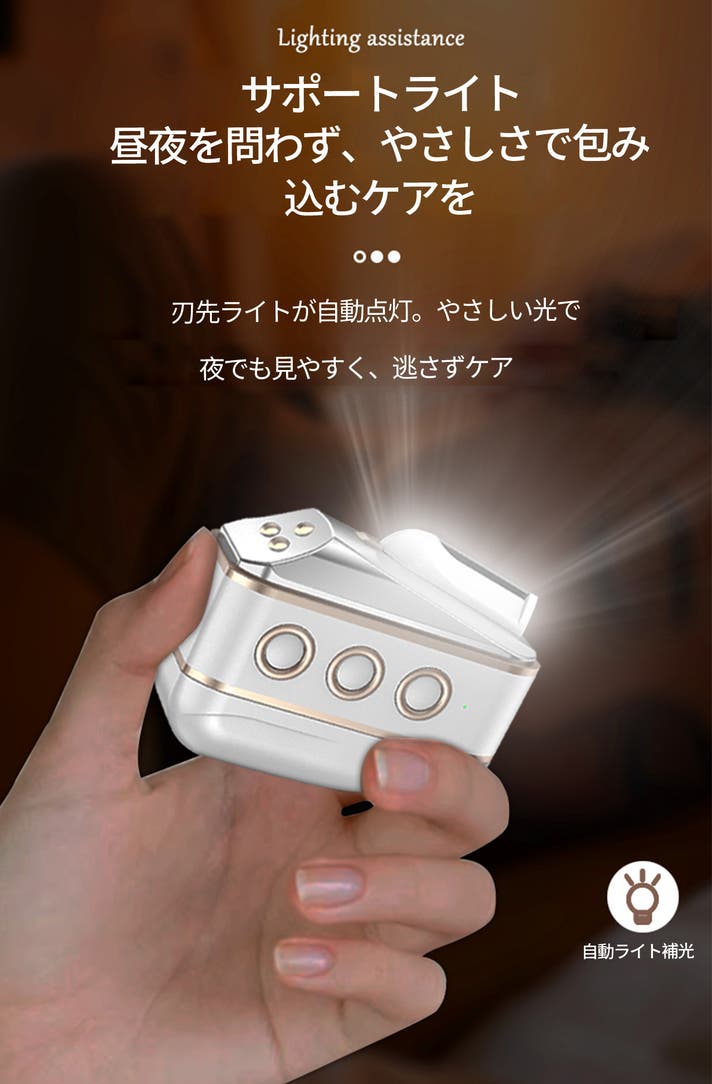 - 超音波シェーバーで毛をすばやく除去、スッキリ!ライト付き暗所でも安心