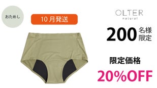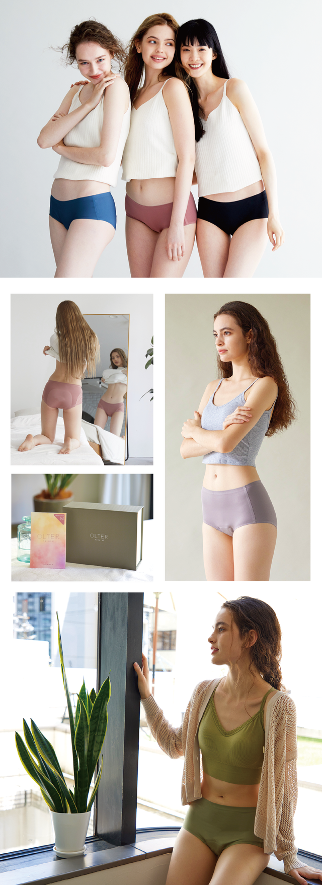 オルタナチュラルの吸水ショーツは約50mlを吸収でき、縫い⽬がない独⾃のシームレス縫製。