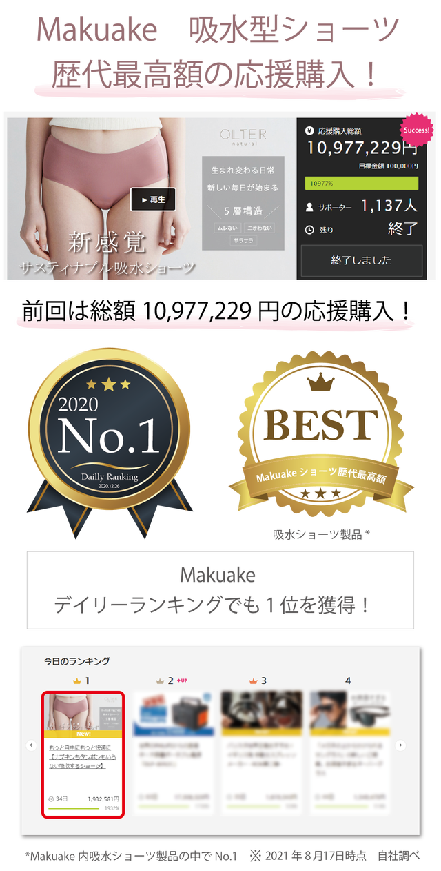 - 前回1000万円以上を売り上げた話題沸騰中の吸水ショーツ第二弾!