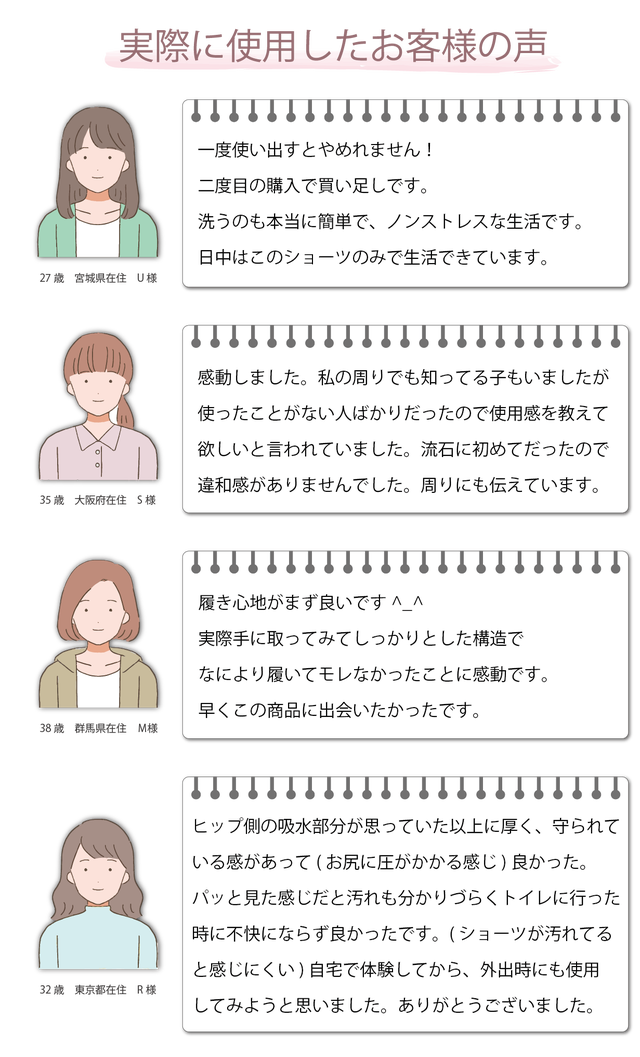 オルタショーツを体験していただき ” はじめての吸水ショーツ ” でも快適に過ごして頂いております。