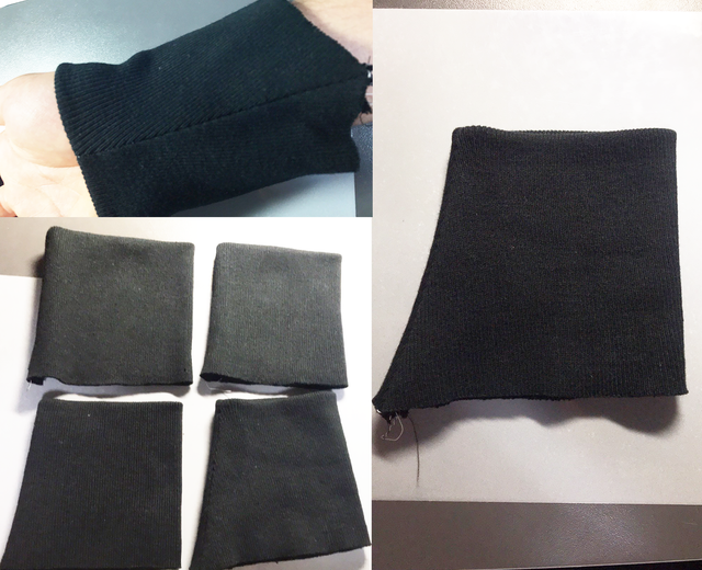袖リブの形は一般的な単にストレートに作るわけではなく、綺麗なシルエットが出るように曲線にし、何度も形を調整しました。
