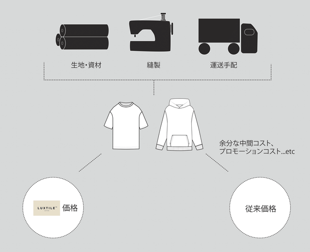③生産と中間コストを管理し、従来のブランド価格よりもお求めやすい価格で提供