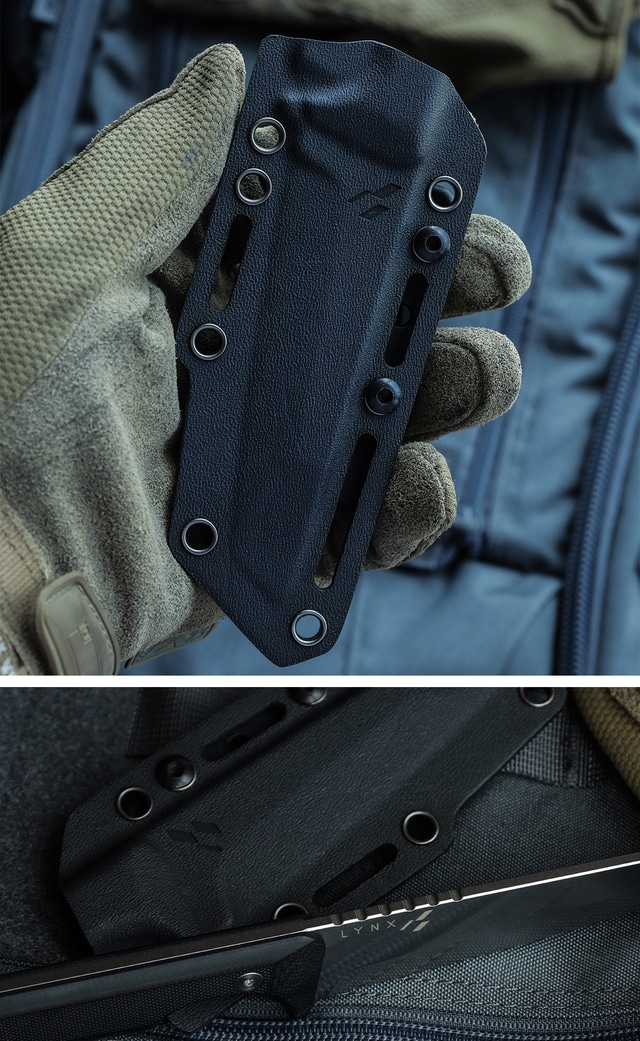 シースには、耐衝撃性や耐摩耗性に優れたKydex素材を採用。ナイフに密着し、優れたフィット感と保持力があります。