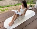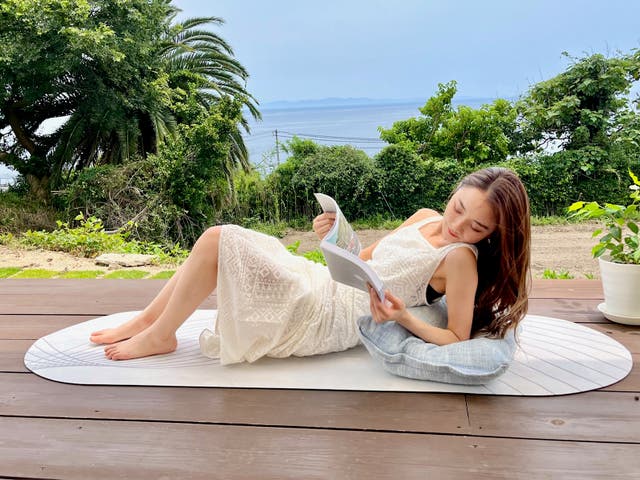 マットの上で、ストレッチやヨガなどの運動だけではなく、寝転んでくつろいだり、座って読書をしたりなど、様々な用途で使用していただけるアイテムとなっています。