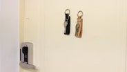 マグネットキーホルダーをスチール製のドアや棚など、目につく場所にピタッ!と貼っておくだけ。