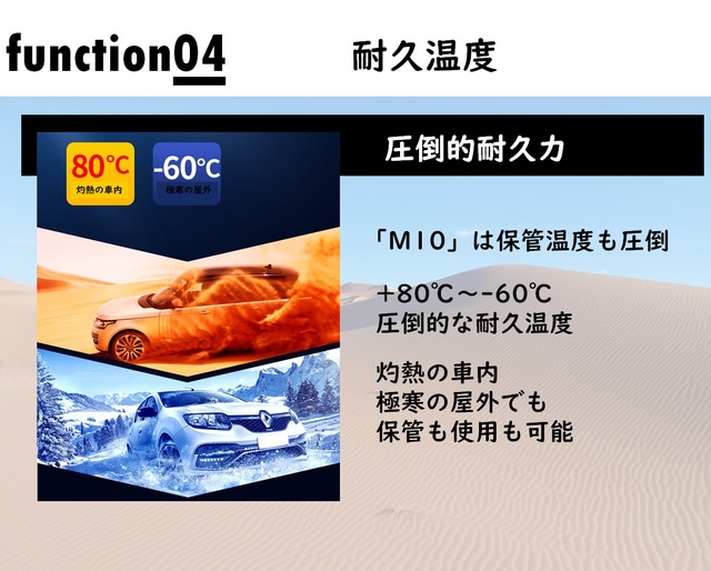 - 本体耐久温度 +80°Cから-60°C 過酷な環境化でも保管可能