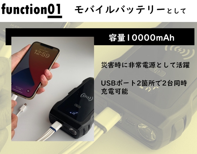 - 災害時も活躍 モバイルバッテリーとしても大活躍♪10000mAhの大容量 ワイヤレス充電対応