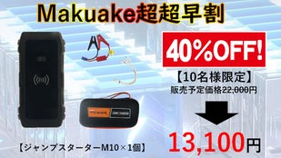 「Makuake(マクアケ)」は、実行者の想いを応援購入によって実現するアタラシイものやサービスのプラットフォームです。このページは、 プロダクトカテゴリの 「災害時も大活躍 ♪ 多機能モバイルバッテリー型カージャンプスターターM10」プロジェクト詳細ページです。