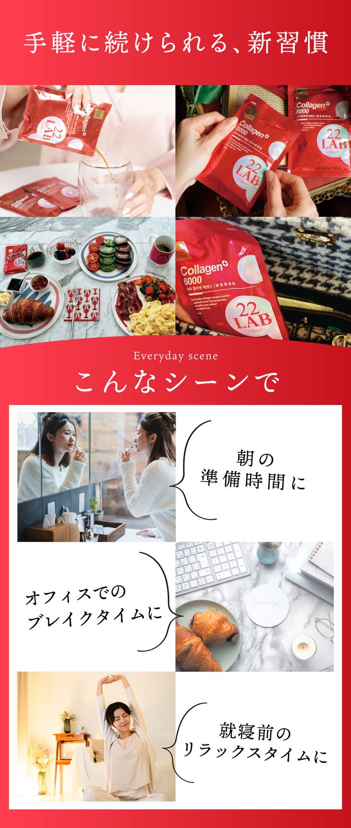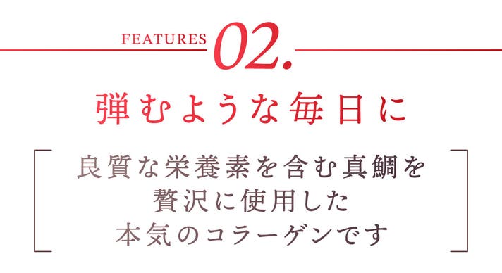 韓国の特許技術により製造された、養殖真鯛由来の高品質コラーゲンペプチドを5,900mg配合しています。
