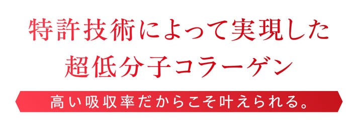 特殊な加水分解技術により、900ダルトンの超低分子コラーゲンを実現しました。
