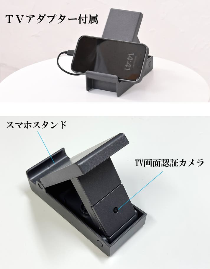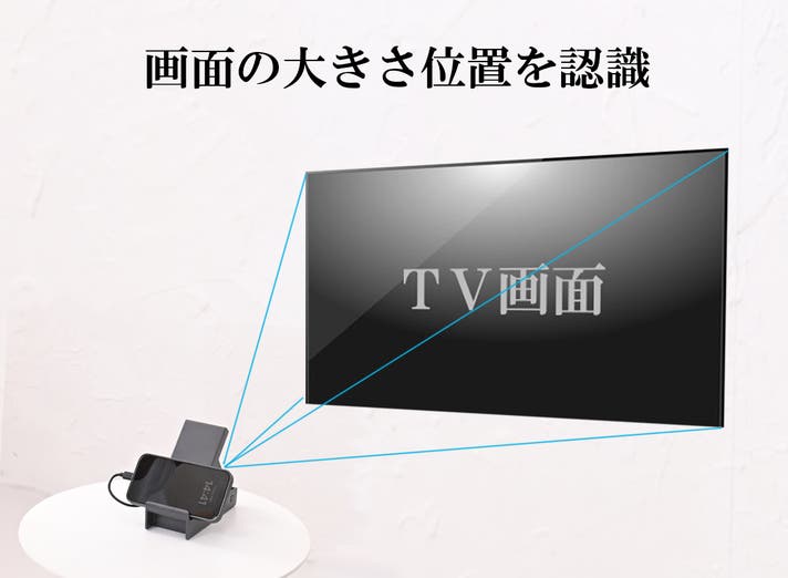 TVアダプターはスマホのUSBカメラ機能を利用して前方にあるTV画面の位置、サイズをスマホ画面をリンクさせます。