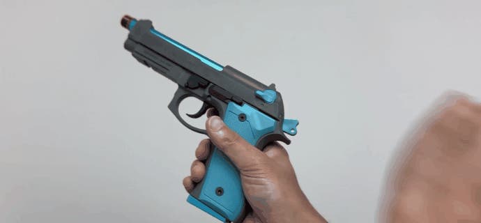 実在するハンドガンをモチーフに同様のサイズで再現したシューティングガン