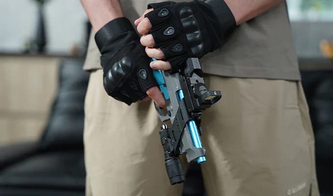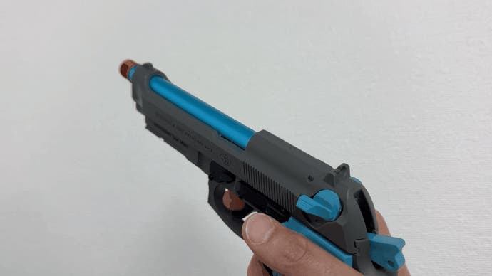 - リアル形状のハンドガンで反動、マガジンリロードなど実銃操作が可能