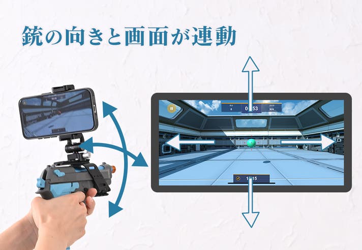 - スマホ装着で省スペースで本格的なシューティングゲームが楽しめる