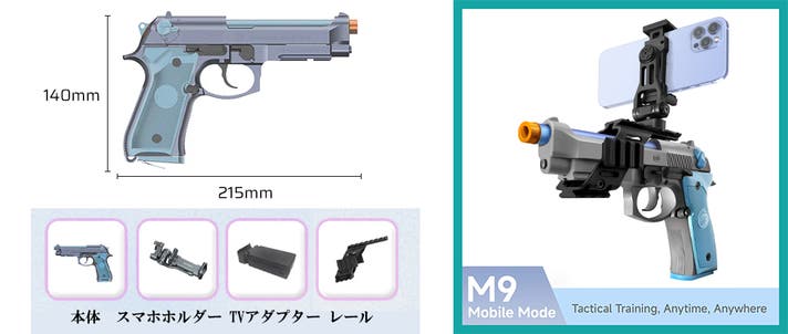 スマホを銃にマウントする専用スマホホルダーが付属します。