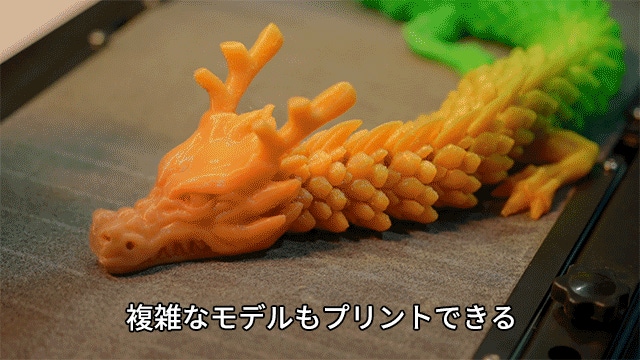 MA20Proは無制限の長さで造形できるFDM 3Dプリンターです。本体の長さを超えるモデル印刷が造形なので、長い槍に似た造形や、等身大のフィギュア等も一回の印刷で完成します。