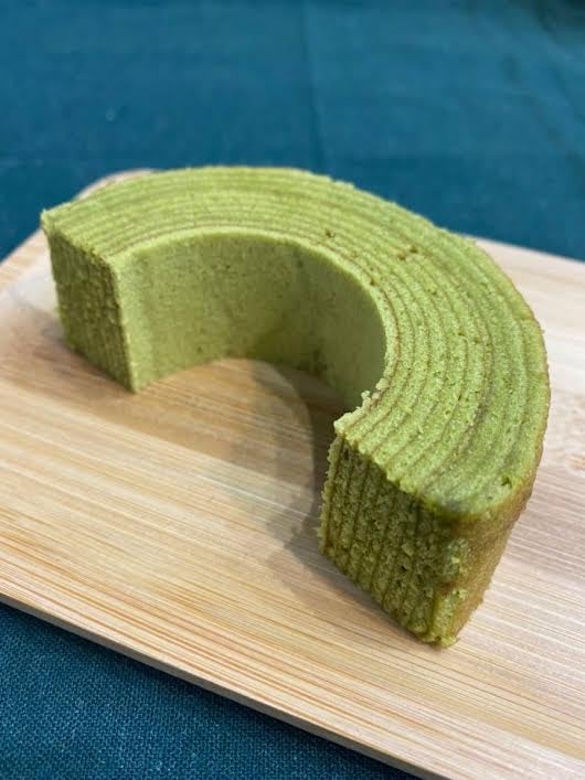 この国産ケール100%の遠赤青汁をふんだんに使用し、さらに淡路島の新鮮な卵や牛乳、米粉。小麦粉は兵庫県産と産地にこだわった素材で一つひとつ丁寧にバウムクーヘンを焼き上げていきます。