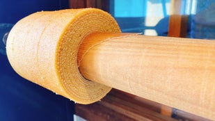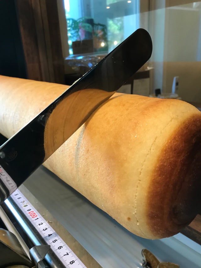 その後バウムクーヘンを手に取って頂くとモチっとした弾力のある柔らかさをダイレクトに感じて頂けます。