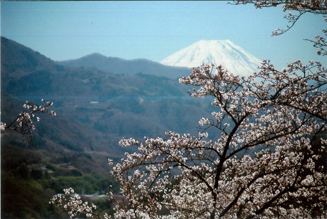 (山梨県唯一の桜の名所百選、大法師公園の桜と富士山)