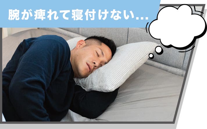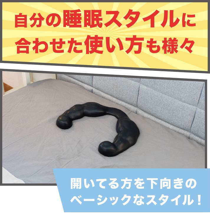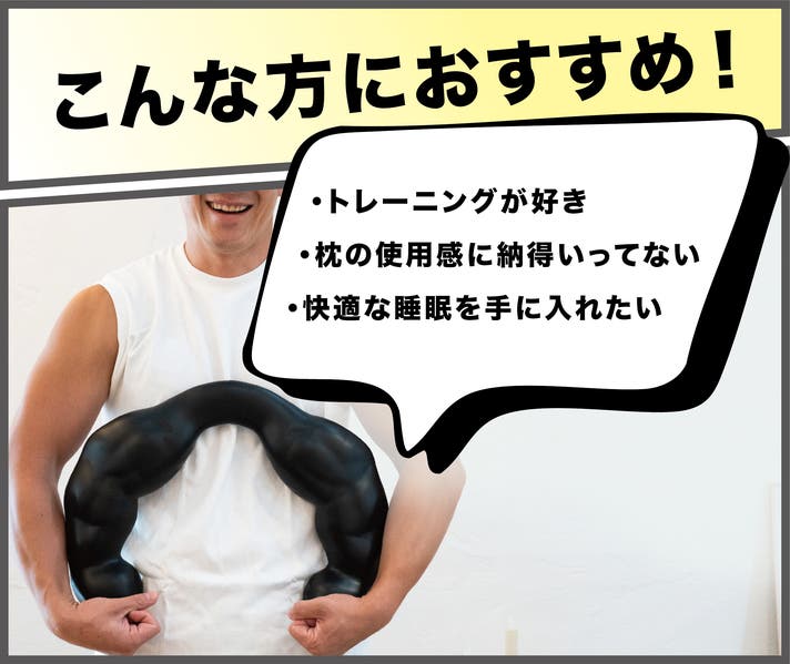 私は普段からトレーニングをしていて、肩幅が広いせいか横向きで眠ると肩がすぐに痛くなることに悩んでいました。そんな時、試しに自分の腕を枕の下に入れてみると、朝起きたら「腕が...ない!?」と思ったら、ビックリするほど腕がしびれてて感覚ゼロ。