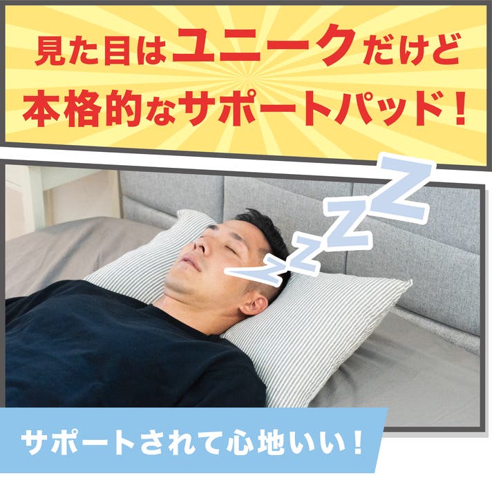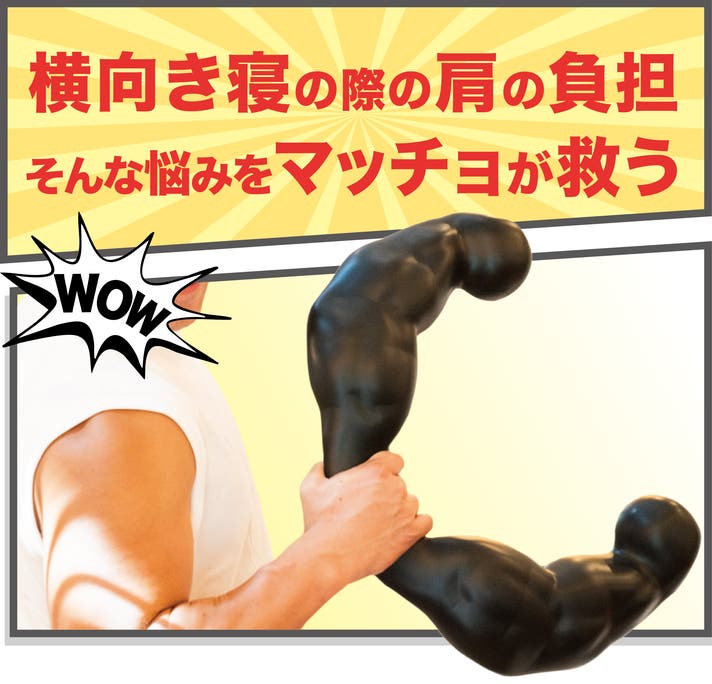 横向きで寝る際に生じる肩の圧迫を分散し、理想の睡眠環境を補助する新発想のサポートパッド『マチョマクラ with補助』がMakuakeにて新登場。見た目はちょっとユニーク。でもその機能は本物!