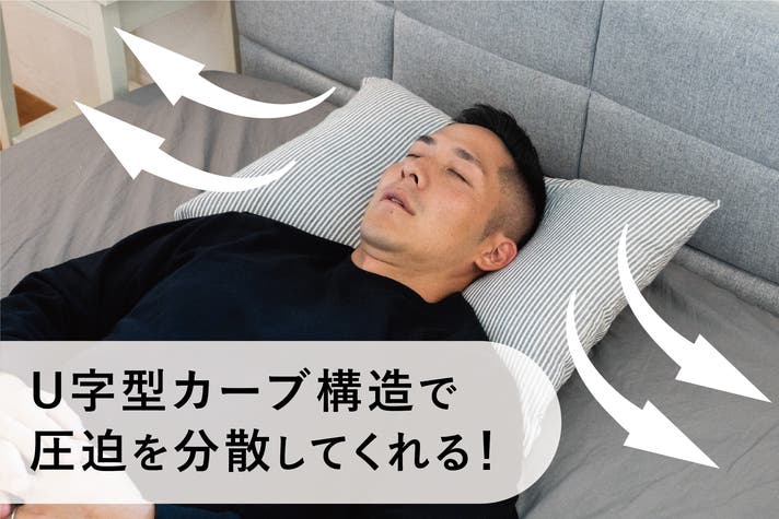 マチョマクラ with補助はU字型のカーブ構造で肩の圧迫をやさしく分散。まるで“頼れる腕”に支えられているように、自然な寝姿勢を保ちます。