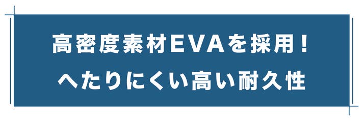 素材にはサンダルやスニーカーのインソールなど、緩衝材などでよく用いられる高密度EVAを採用。軽量なのに強靭で、へたりにくく形状を長期間キープしてくれる高い耐久性です。