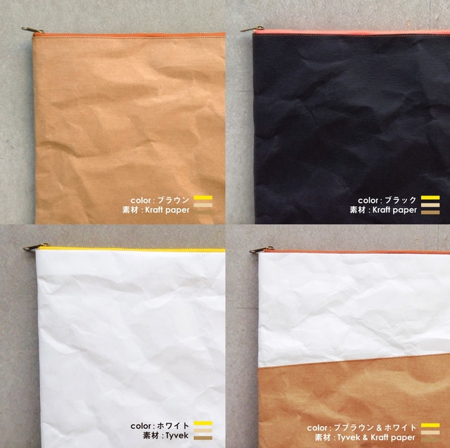 ホワイトはTyvek素材、ブラウンとブラックはKraft paper素材となっています。
