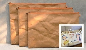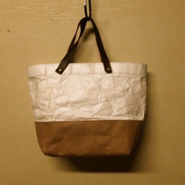 こちらは(上写真)TyvekとKraft paperで作ったバッグです。2年ほど前に製品を購入してくれたSさんから頂いた写真です。何度も洗濯をしているそうですが、問題なく使えているとのことです。そう、かなり頑丈なのです!