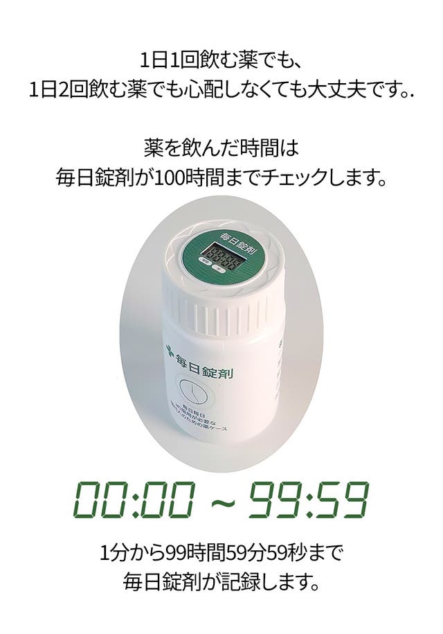 - ふたを開けたり閉めたりするとタイマーが表示され、 薬をいつ飲んだのか確認が可能!