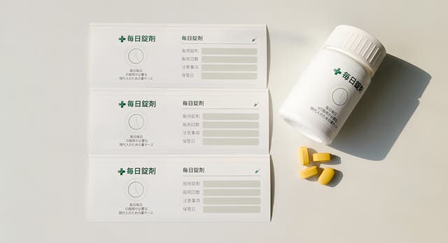 毎日錠剤は情報を記入できるラベルが付属しているため、薬の種類や服用回数、賞味期限や注意事項など、記録して管理することができます。