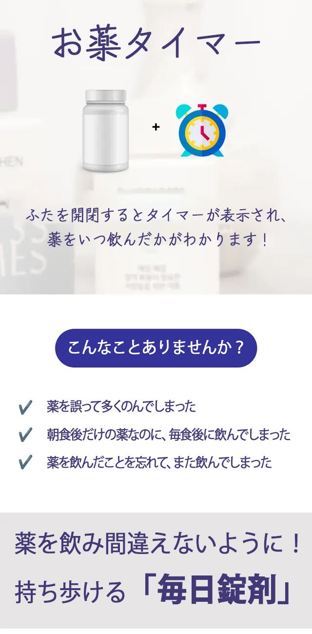 - コンパクトなサイズで持ち運び便利!日常の健康管理「毎日錠剤」
