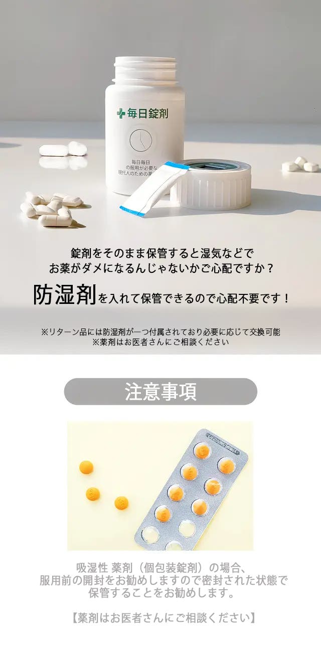 毎日錠剤は幼児キャップロックを適用し、ふたを押して回さないと開けないように設計されています。
