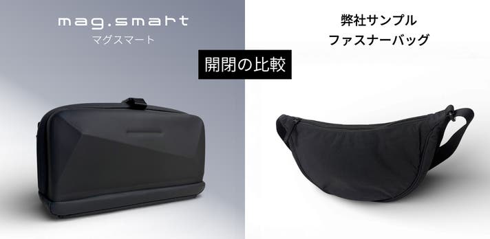マグスマートと弊社サンプルのファスナーバッグを"片手"開閉した比較です。
