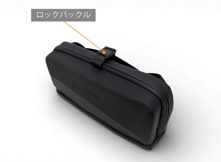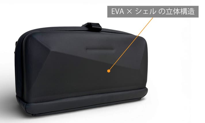 EVA×シェルによる前面は、外部からの衝撃や圧力を軽減させ、サングラスやガジェット類の収納に役立ちます。