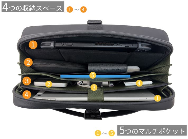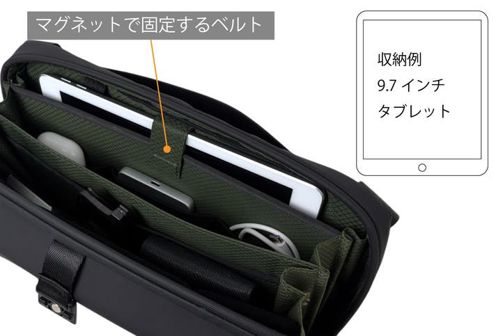 タブレット端末、ポータブルゲーム、モバイルバッテリーなど様々なガジェットの収納にも対応。