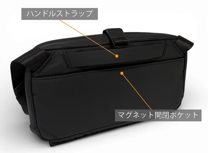 背面の大きなポケットは開閉部分が【マグネット式】になります。