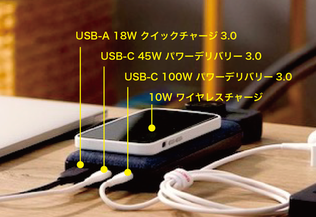 【 MagCharger 120 】は容量25,600mAh。出力合計は最大123Wで、ワイヤレスとUSB-A、2つのUSB-C、合計4つの出力ポートを持ちます。