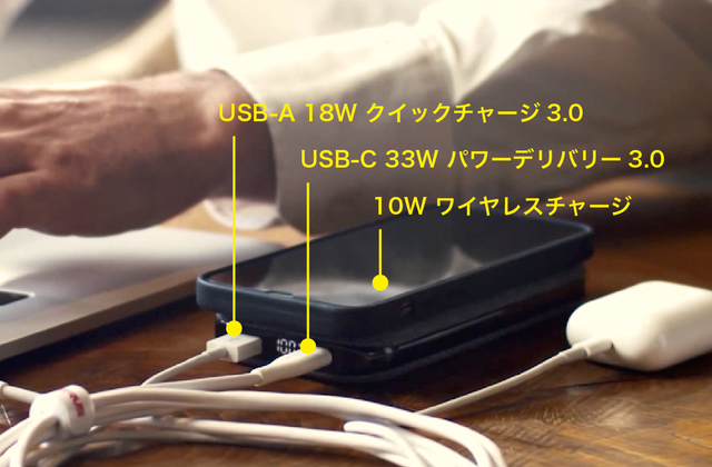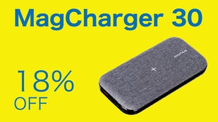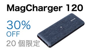 【 MagCharger 30 】は容量10,000mAh。出力合計は最大33Wで、ワイヤレスとUSB-A、2つのUSB-C、合計4つの出力ポートを持ちます。