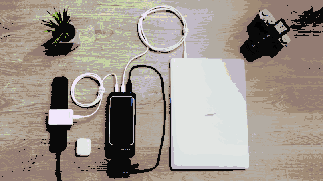 - MagSafe対応ワイヤレス充電バッテリー。スマホ、ラップトップ等複数デバイスに同時充電!