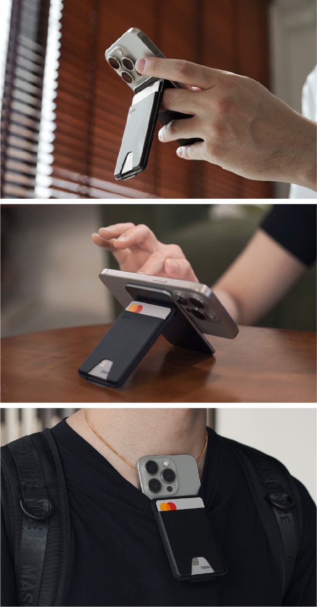 A. MagBase™は単なるウォレットではなく、完全モジュール式の磁気システムです。摩耗しても全体を買い替える必要はなく、プレートだけを交換できます。ウォレット以外にもスタンド、IDホルダー、モバイルバッテリーなど、今後増える多様なプレートに対応可能。ユーザーのニーズに合わせ進化する、スマートでサステナブルな基盤です。